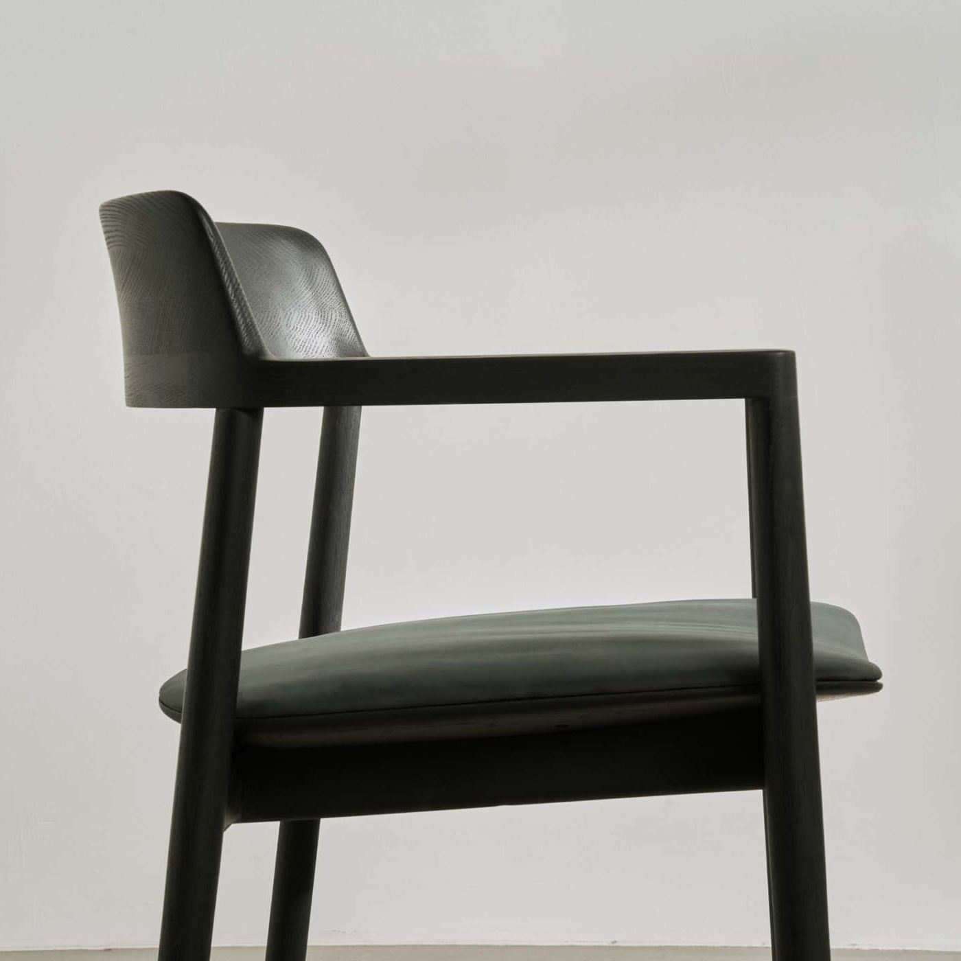 Refined and with a pared back aesthetic, the OVO armchair is made in solid oak with a choice of ebonised or natural finish; and solid walnut. Available with either a timber or upholstered seat, it has a soft, pillowed finish to the tops of the armrests and softly bevelled edges on the back and seat making it both comfortable to sit on and incredibly tactile.