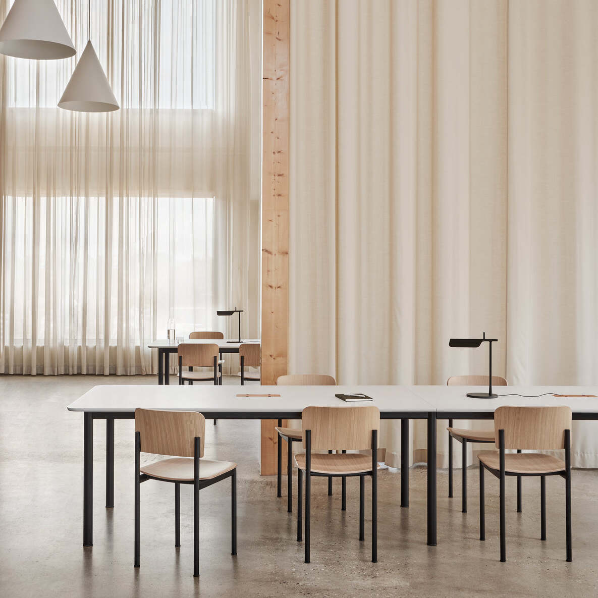 At first glance, the chairs and tables in the Plan collection could seem almost ascetic in their simplicity. Still, in use, the generosity, comfort, and subtle detailing of a design truly evolved around the human body becomes evident. The clean lines are infused with a richness in tactility and attention to detail that adds presence and builds a good atmosphere wherever it is used.