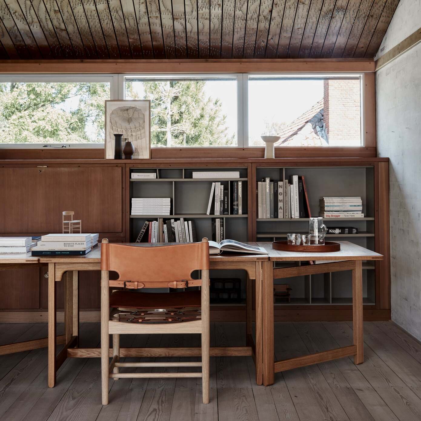 Borge Mogensen drew much of his inspiration from traditional chairs of other cultures, such as English Windsor chairs and the Shaker movement in America. In Spain, a traditional way of making furniture involved the use of sturdy leather to construct the seat as part of a wooden structure – hence the name of what went on to become one of Mogensen's most celebrated designs.