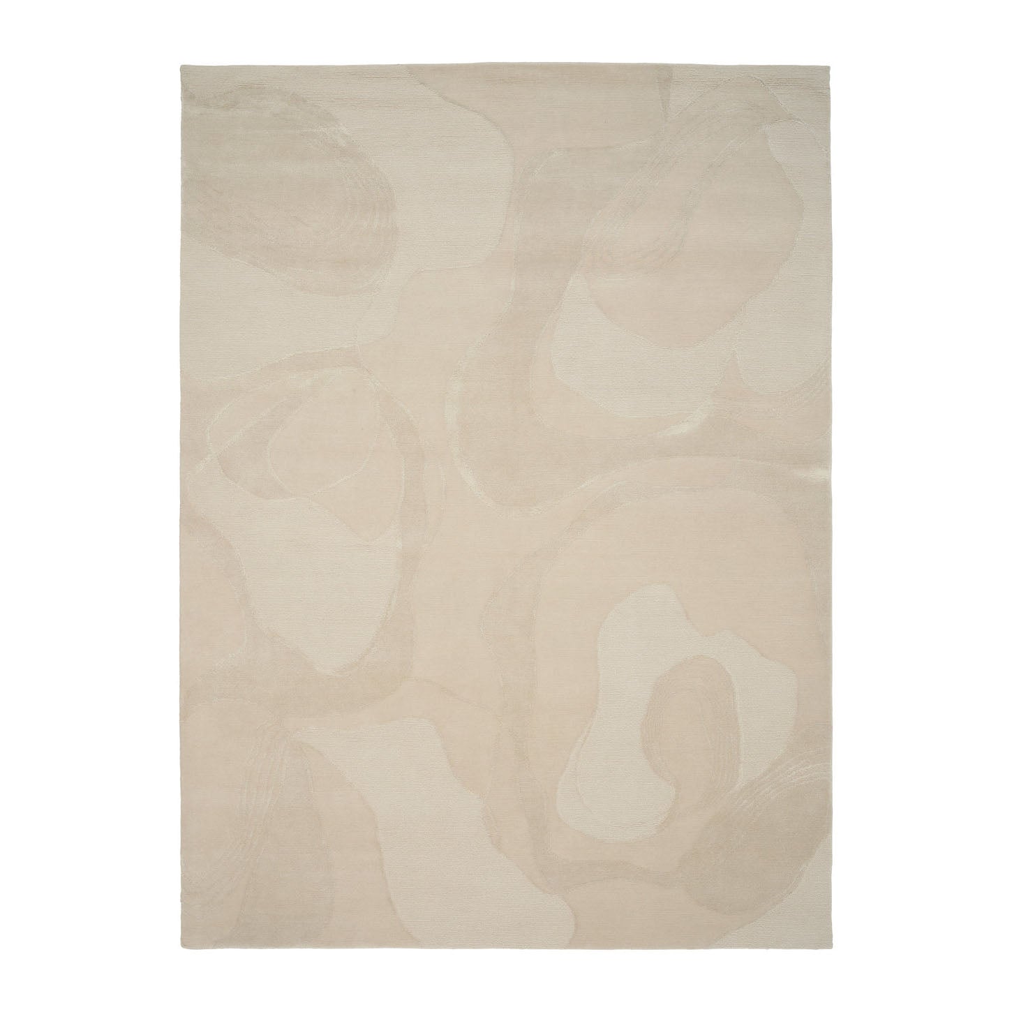 Aquaverse uses organic contours to recreate hand-drawn lines depicting the shells’ movement in an underwater world. The silk lines separate the areas into whirling wave-like segments, each one defined by contrasting surfaces – in sheared or boucle wool or wool-silk blend – creating a beautiful structural pattern on a rug that will bring visual and tactile pleasure for many years to come.