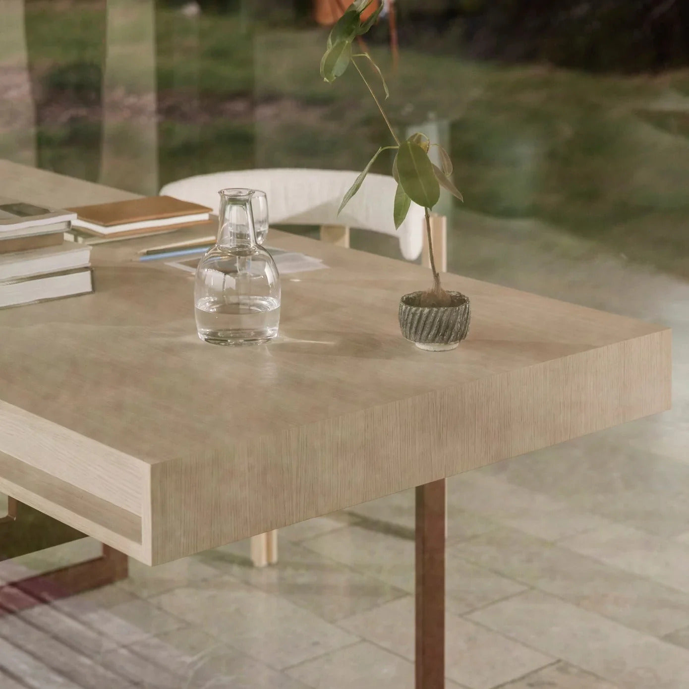 Since it was designed in 2000, Glass Carafe has been hiding in Aldo Bakker’s prototype archive. The carafe’s wide bottom that converts into a very slender neck creates a soft and organic shape. The same shape is mirrored in the drinking glass, which doubles as a lid for the carafe itself. Whether the two are placed next to each other or with the glass upside down on top, the shape of the set has a fascinating and eye-catching appeal. Glasses are also sold separately in a set of four.