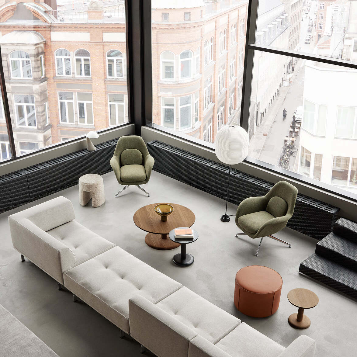 Originally launched for the 11 Howard Hotel in New York, the Swoon Lounge is an open invitation to luxuriate in comfort. Based on their extensive experience designing high-end hotel interiors and Michelin-star restaurants, Space Copenhagen created Swoon to fill a gap missing in the market – a hybrid of a lounge chair and an armchair with the benefits of both. The singular shell merges the back, seat and armrests into one entity, allowing for exceptional support and a fit that feels natural. The seat and back cushions are also attached as one piece for endless hours of comfort.