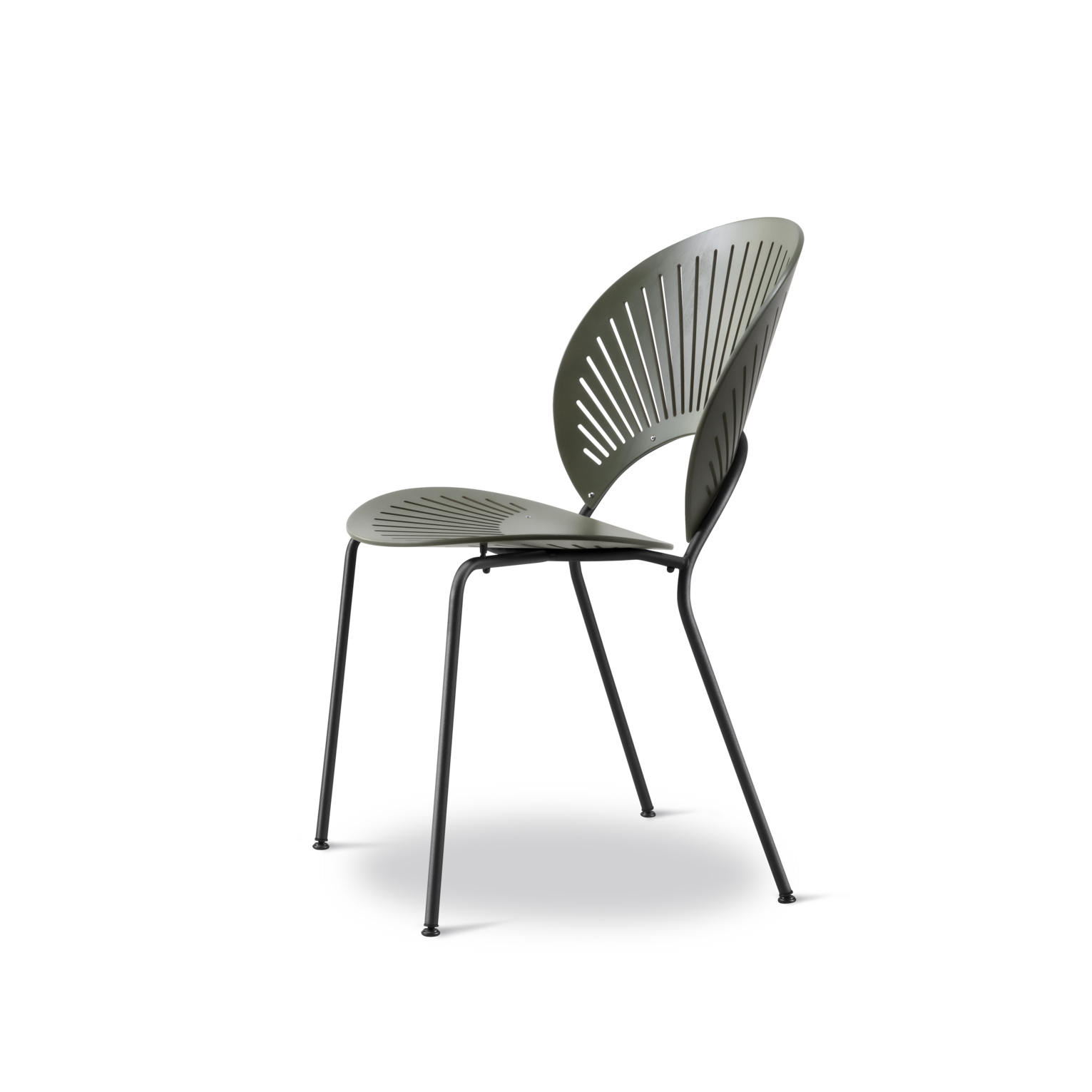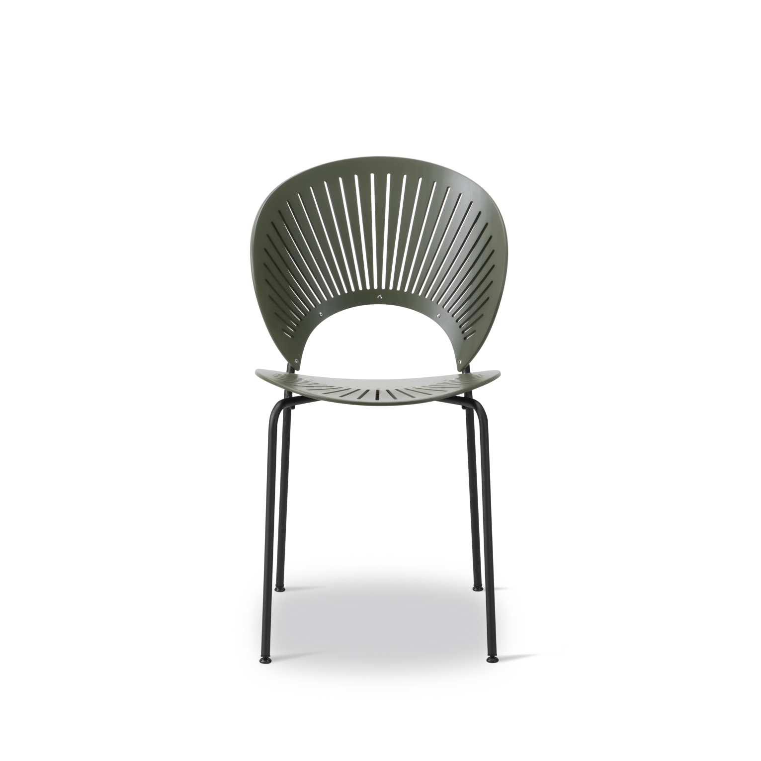 When designing the Trinidad Chair in 1993, Nanna Ditzel found inspiration in the elaborate fretwork from the Gingerbread Facades that she had seen in colonial architecture while traveling through Trinidad. Much like the facades, the cut-out fretwork of the chair triggers an interplay of light and shadows, creating a pattern projected into space and a subtle sense of motion.
