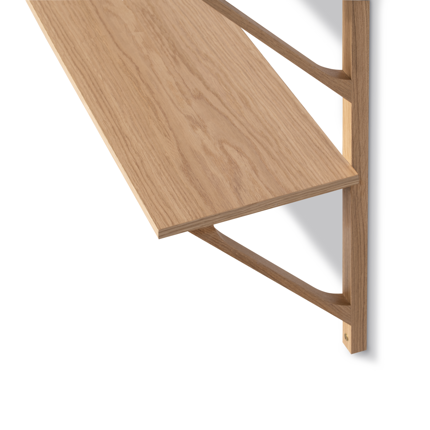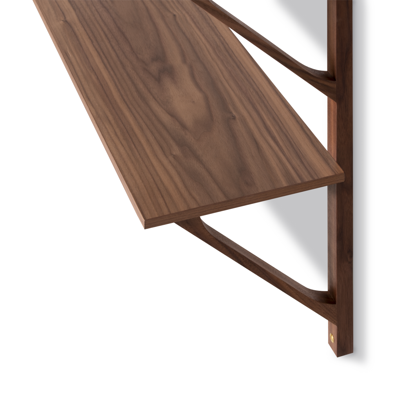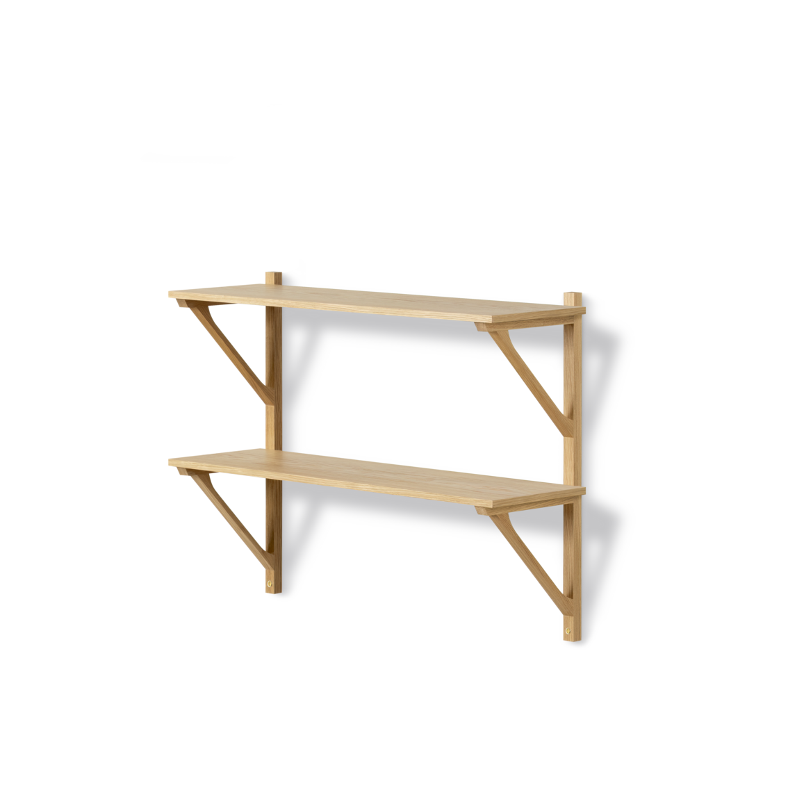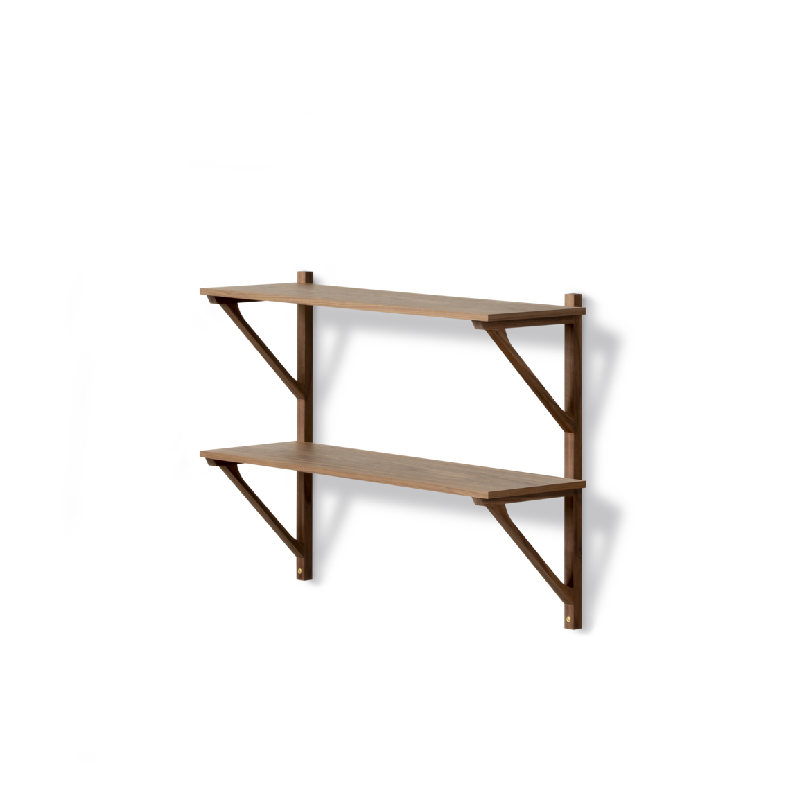 Brass screws for mounting of shelves to rails and to the wall is included.