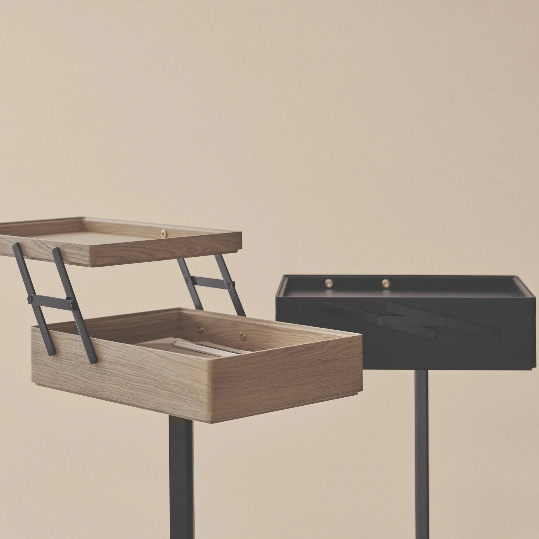 Renowned Italian designer Achille Castiglioni (1918-2002) had a passion for re-designing, re-inventing and re-conceptualizing. Traditional interior design objects would pass through his Milan-based studio and end up perfected. He always aimed at enhancing and glorifying the value of the design. Throughout his career he worked to raise design to an ever-higher level of synthesis - stripping design down to the very core and eliminating everything superfluous. During his career Achille Castiglioni collaborated with many designers, among them Giancarlo Pozzi. Together they made Trio and Comodo in 1991.