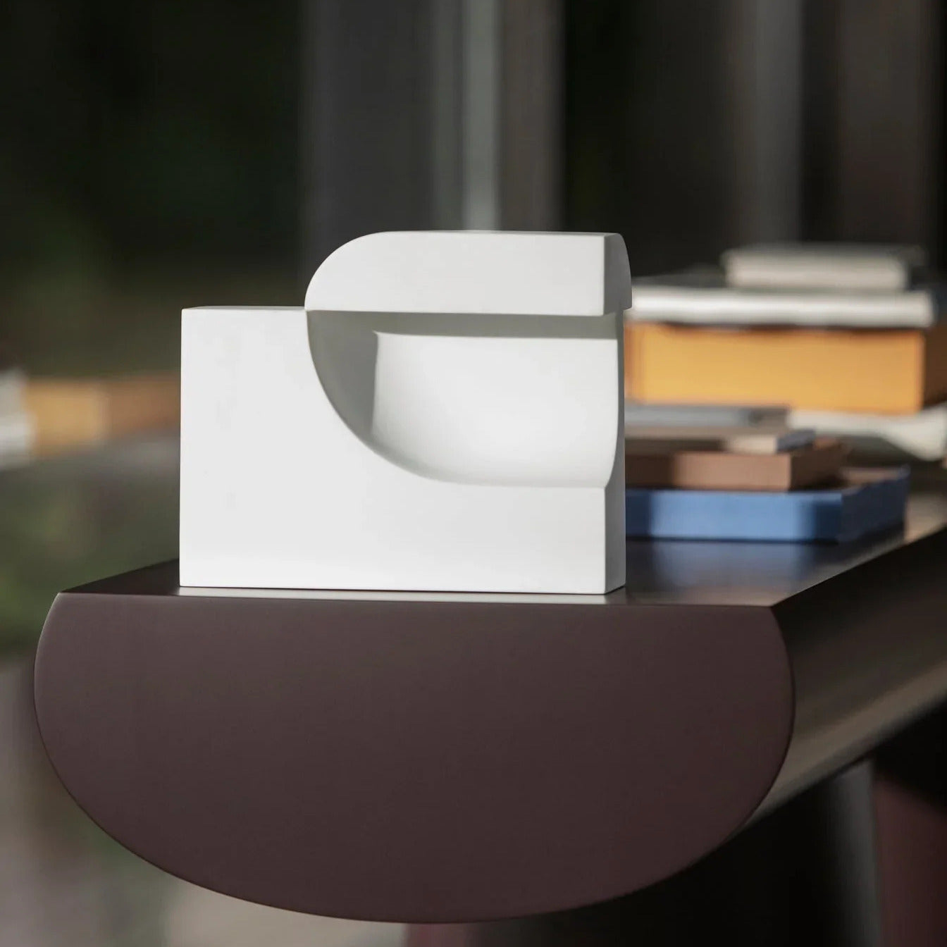 Moby is an extraordinarily sculptural table lamp. Filled with intriguing contrasts, it balances a soft and comforting light with a striking, futuristic design. The void in the main element creates a small cap in which the light source is enclosed. When Moby is on, the soft light unfolds and illuminates the cavity, immediately drawing the attention to the organic curves.
