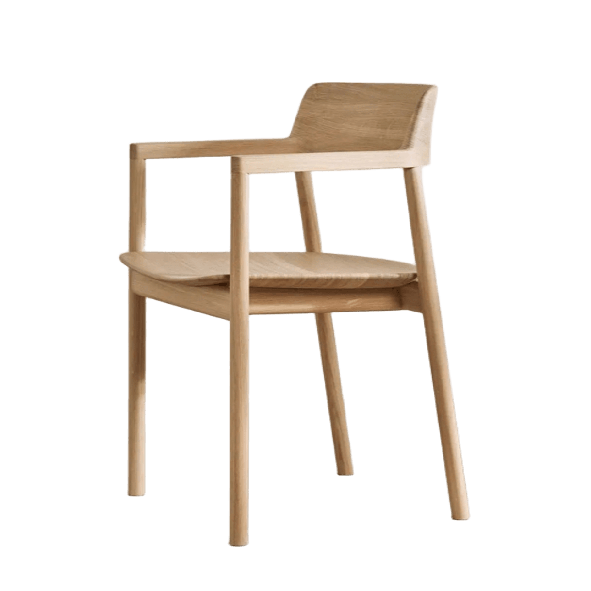 Refined and with a pared back aesthetic, the OVO armchair is made in solid oak with a choice of ebonised or natural finish; and solid walnut. Available with either a timber or upholstered seat, it has a soft, pillowed finish to the tops of the armrests and softly bevelled edges on the back and seat making it both comfortable to sit on and incredibly tactile.