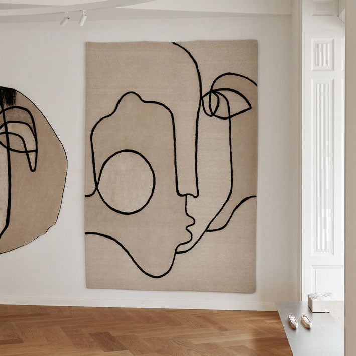 Self Mirage uses the energy of contrasting hand-drawn lines to create a strong visual narrative that reveals its face to the viewer. The interplay of contrasting black linen and sumptuously soft New Zealand wool and silk provide different depths, giving a tactile quality to the rug that is both timeless and contemporary.